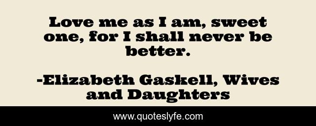 "Elizabeth Gaskell, Wives and Daughters Quotes." Quoteslyfe.com, 2025. Sat. 06 Dec. 2025. <https://www.quoteslyfe.com/quote/Love-me-as-I-am-sweet-one-186764>.