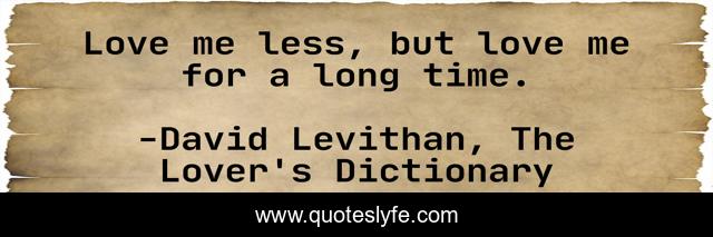 This page presents the quote "Love me less, but love me for a long time.". Author of this quote is David Levithan, The Lover's Dictionary. This quote is about romance, lovers, love, affection,.