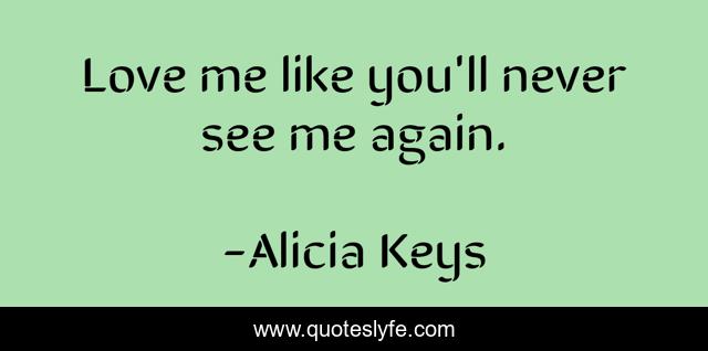 This page presents the quote "Love me like you'll never see me again.". Author of this quote is Alicia Keys. This quote is about proposition, love, affection,.