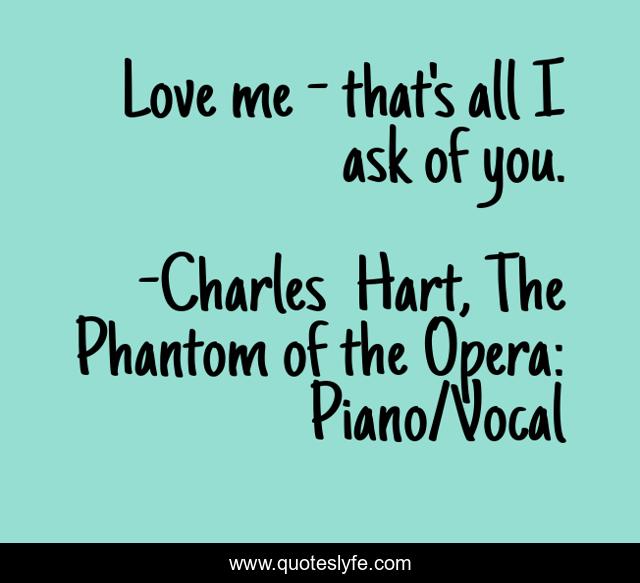 "Charles Hart, The Phantom of the Opera: Piano/Vocal Quotes." Quoteslyfe.com, 2025. Mon. 08 Dec. 2025. <https://www.quoteslyfe.com/quote/Love-me-that-s-all-I-ask-248062>.
