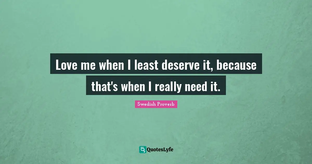 "Swedish Proverb Quotes." Quoteslyfe.com, 2025. Fri. 05 Dec. 2025. <https://www.quoteslyfe.com/quote/Love-me-when-I-least-deserve-it-3229>.