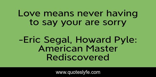 This page presents the quote "Love means never having to say your are sorry". Author of this quote is Eric Segal, Howard Pyle: American Master Rediscovered. .