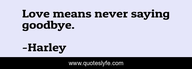 "Harley Quotes." Quoteslyfe.com, 2025. Sat. 06 Dec. 2025. <https://www.quoteslyfe.com/quote/Love-means-never-saying-goodbye-18841>.