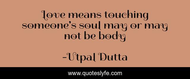 This page presents the quote "Love means touching someone's soul may or may not be body". Author of this quote is Utpal Dutta. .
