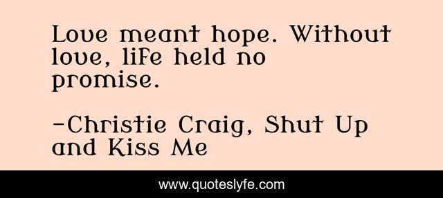 This page presents the quote "Love meant hope. Without love, life held no promise.". Author of this quote is Christie Craig, Shut Up and Kiss Me. This quote is about love, life, promise, hope, affection,.
