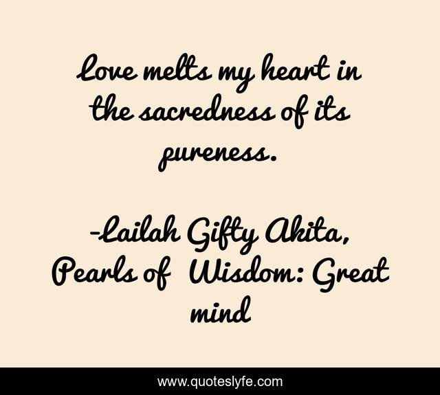 "Lailah Gifty Akita, Pearls of Wisdom: Great mind Quotes." Quoteslyfe.com, 2025. Tue. 09 Dec. 2025. <https://www.quoteslyfe.com/quote/Love-melts-my-heart-in-the-sacredness-77245>.