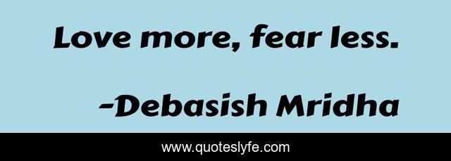 This page presents the quote "Love more, fear less.". Author of this quote is Debasish Mridha. This quote is about fear-less, debasish, love, mridha, philosophy, debasish-mridha, love-more, inspirational, enthusiasm,.