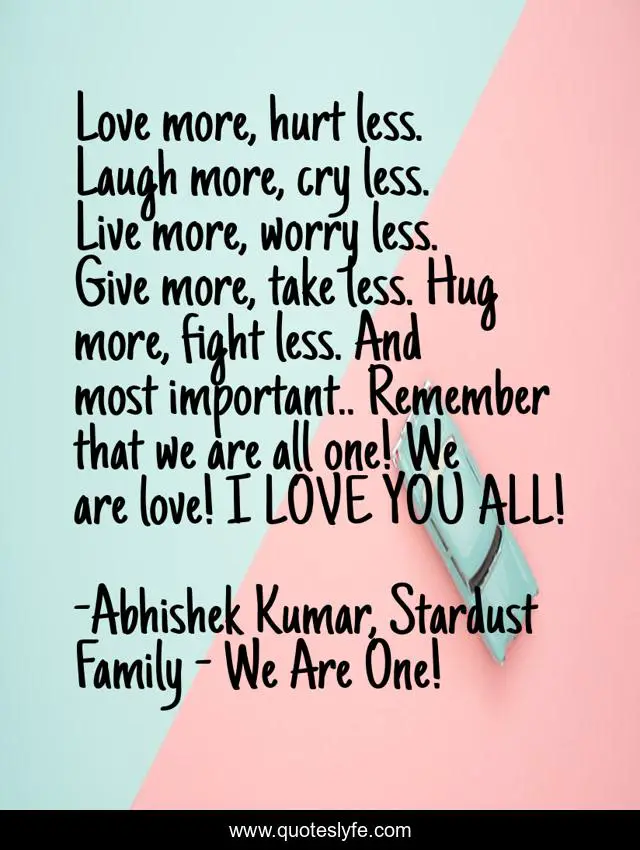 "Abhishek Kumar, Stardust Family - We Are One! Quotes." Quoteslyfe.com, 2025. Sat. 06 Dec. 2025. <https://www.quoteslyfe.com/quote/Love-more-hurt-less-Laugh-more-cry-179009>.