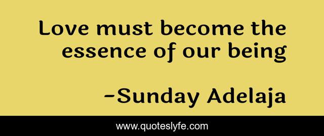 This page presents the quote "Love must become the essence of our being". Author of this quote is Sunday Adelaja. This quote is about being, essence, love, affection,.