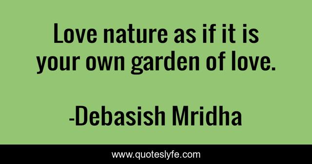 This page presents the quote "Love nature as if it is your own garden of love.". Author of this quote is Debasish Mridha. This quote is about love, nature, philosophy, debasish-mridha, garden-of-love, quotes, inspirational, enthusiasm, love-nature,.