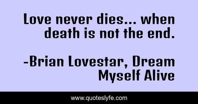 "Brian Lovestar, Dream Myself Alive Quotes." Quoteslyfe.com, 2025. Mon. 08 Dec. 2025. <https://www.quoteslyfe.com/quote/Love-never-dies-when-death-is-not-188919>.