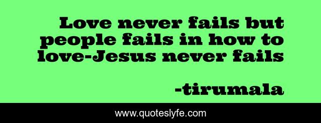 This page presents the quote "Love never fails but people fails in how to love-Jesus never fails". Author of this quote is tirumala. This quote is about failure, gods-love, love, affection, jesus,.