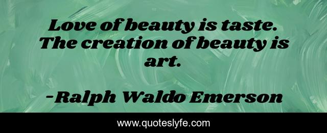 This page presents the quote "Love of beauty is taste. The creation of beauty is art.". Author of this quote is Ralph Waldo Emerson. This quote is about creation, art, beauty,.