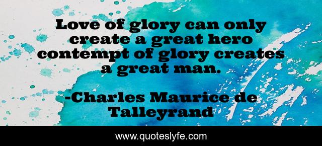 This page presents the quote "Love of glory can only create a great hero contempt of glory creates a great man.". Author of this quote is Charles Maurice de Talleyrand. This quote is about love, hero, affection, man,.
