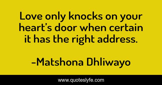 "Matshona Dhliwayo Quotes." Quoteslyfe.com, 2025. Sat. 06 Dec. 2025. <https://www.quoteslyfe.com/quote/Love-only-knocks-on-your-heart-s-49623>.