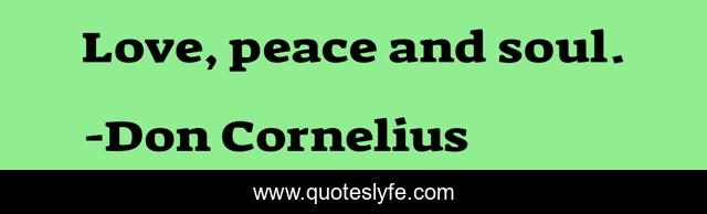 This page presents the quote "Love, peace and soul.". Author of this quote is Don Cornelius. This quote is about love, soul, affection,.