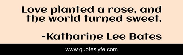 "Katharine Lee Bates Quotes." Quoteslyfe.com, 2025. Sat. 06 Dec. 2025. <https://www.quoteslyfe.com/quote/Love-planted-a-rose-and-the-world-286834>.