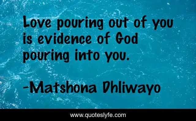 "Matshona Dhliwayo Quotes." Quoteslyfe.com, 2025. Sat. 06 Dec. 2025. <https://www.quoteslyfe.com/quote/Love-pouring-out-of-you-is-evidence-121091>.