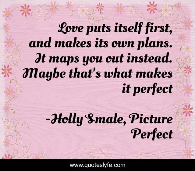 "Holly Smale, Picture Perfect Quotes." Quoteslyfe.com, 2025. Fri. 05 Dec. 2025. <https://www.quoteslyfe.com/quote/Love-puts-itself-first-and-makes-its-50805>.