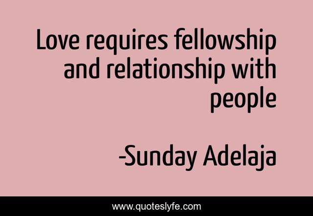 "Sunday Adelaja Quotes." Quoteslyfe.com, 2025. Mon. 08 Dec. 2025. <https://www.quoteslyfe.com/quote/Love-requires-fellowship-and-relationship-with-people-39863>.
