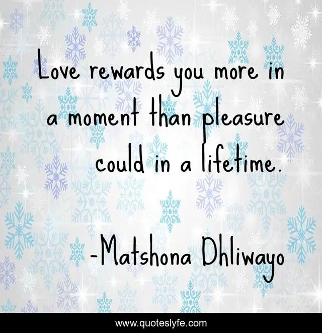 "Matshona Dhliwayo Quotes." Quoteslyfe.com, 2025. Sat. 06 Dec. 2025. <https://www.quoteslyfe.com/quote/Love-rewards-you-more-in-a-moment-49468>.