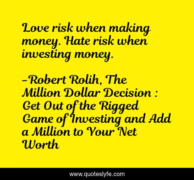 "Robert Rolih, The Million Dollar Decision : Get Out of the Rigged Game of Investing and Add a Million to Your Net Worth Quotes." Quoteslyfe.com, 2025. Sat. 06 Dec. 2025. <https://www.quoteslyfe.com/quote/Love-risk-when-making-money-Hate-risk-240263>.