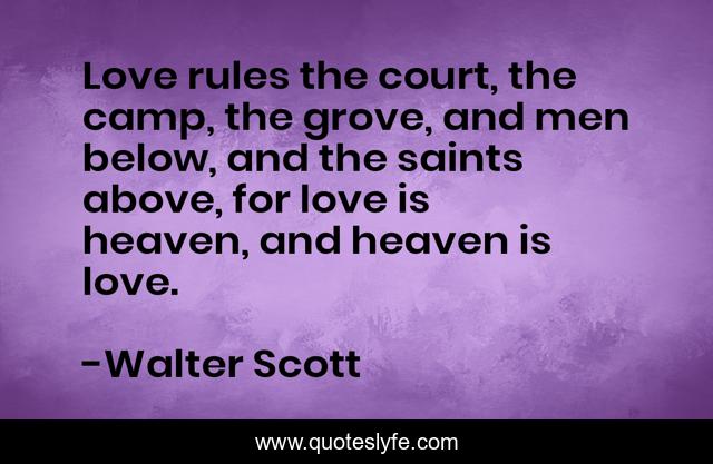 This page presents the quote "Love rules the court, the camp, the grove, and men below, and the saints above, for love is heaven, and heaven is love.". Author of this quote is Walter Scott. This quote is about love, affection,.