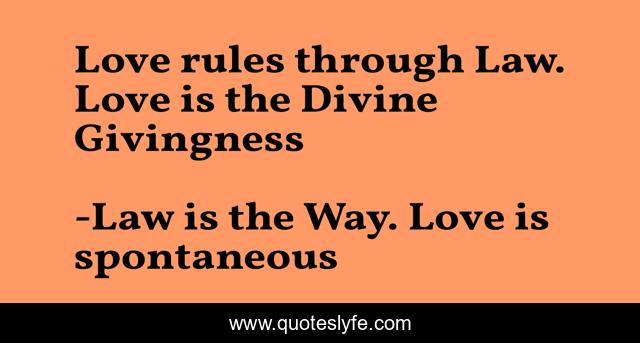 This page presents the quote "Love rules through Law. Love is the Divine Givingness". Author of this quote is Law is the Way. Love is spontaneous. .