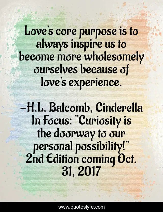 "H.L. Balcomb, Cinderella In Focus: "Curiosity is the doorway to our personal possibility!" 2nd Edition coming Oct. 31, 2017 Quotes." Quoteslyfe.com, 2025. Fri. 05 Dec. 2025. <https://www.quoteslyfe.com/quote/Love-s-core-purpose-is-to-always-164894>.