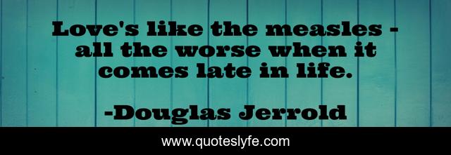 This page presents the quote "Love's like the measles - all the worse when it comes late in life.". Author of this quote is Douglas Jerrold. .