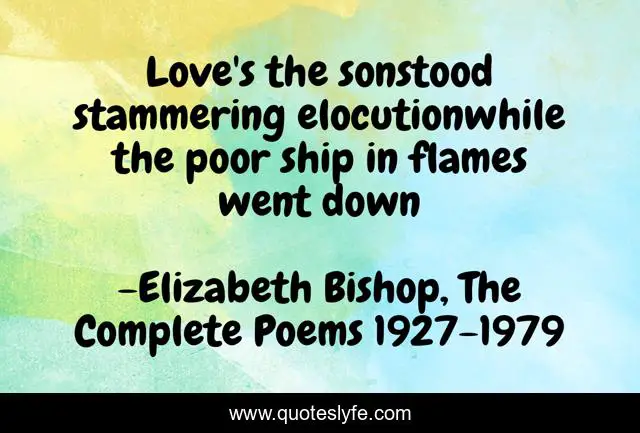 "Elizabeth Bishop, The Complete Poems 1927-1979 Quotes." Quoteslyfe.com, 2025. Fri. 05 Dec. 2025. <https://www.quoteslyfe.com/quote/Love-s-the-sonstood-stammering-elocutionwhile-the-230446>.