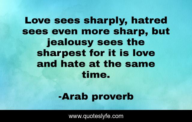 This page presents the quote "Love sees sharply, hatred sees even more sharp, but jealousy sees the sharpest for it is love and hate at the same time.". Author of this quote is Arab proverb. This quote is about hate, love, jealousy, affection,.