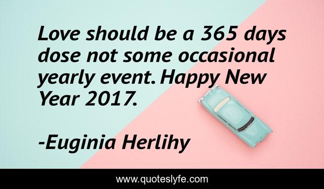 This page presents the quote "Love should be a 365 days dose not some occasional yearly event. Happy New Year 2017.". Author of this quote is Euginia Herlihy. This quote is about love, affection,.