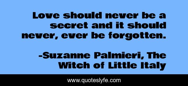 This page presents the quote "Love should never be a secret and it should never, ever be forgotten.". Author of this quote is Suzanne Palmieri, The Witch of Little Italy. This quote is about secret, love, remember, affection,.