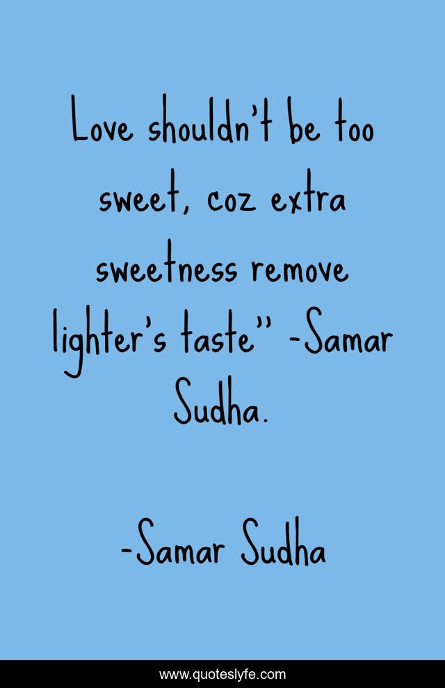 "Samar Sudha Quotes." Quoteslyfe.com, 2025. Sat. 06 Dec. 2025. <https://www.quoteslyfe.com/quote/Love-shouldn-t-be-too-sweet-coz-226759>.