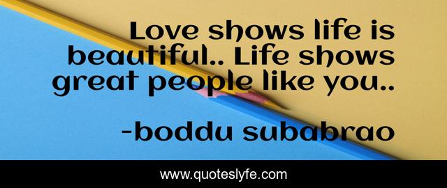 "boddu subabrao Quotes." Quoteslyfe.com, 2025. Sun. 07 Dec. 2025. <https://www.quoteslyfe.com/quote/Love-shows-life-is-beautiful-Life-shows-49336>.