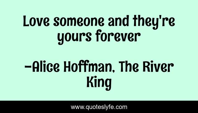 This page presents the quote "Love someone and they're yours forever". Author of this quote is Alice Hoffman, The River King. This quote is about forever, love, affection,.