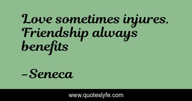 This page presents the quote "Love sometimes injures. Friendship always benefits". Author of this quote is Seneca. This quote is about life, love, relationship, stoicism, friendship, affection,.