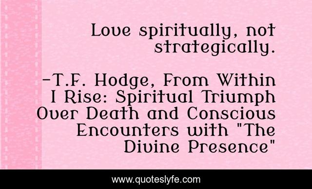 "T.F. Hodge, From Within I Rise: Spiritual Triumph Over Death and Conscious Encounters with "The Divine Presence" Quotes." Quoteslyfe.com, 2025. Fri. 05 Dec. 2025. <https://www.quoteslyfe.com/quote/Love-spiritually-not-strategically-22072>.