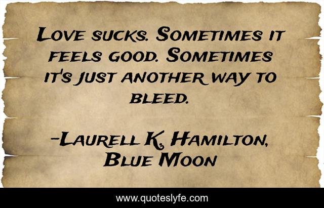 This page presents the quote "Love sucks. Sometimes it feels good. Sometimes it's just another way to bleed.". Author of this quote is Laurell K. Hamilton, Blue Moon. This quote is about love, affection,.