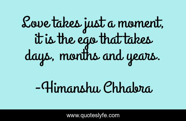 This page presents the quote "Love takes just a moment, it is the ego that takes days, months and years.". Author of this quote is Himanshu Chhabra. This quote is about ego, love, affection,.