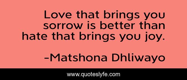 "Matshona Dhliwayo Quotes." Quoteslyfe.com, 2025. Sat. 06 Dec. 2025. <https://www.quoteslyfe.com/quote/Love-that-brings-you-sorrow-is-better-98237>.