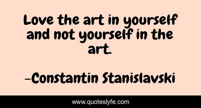 This page presents the quote "Love the art in yourself and not yourself in the art.". Author of this quote is Constantin Stanislavski. This quote is about art, yourself,.