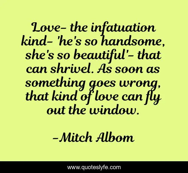 "Mitch Albom Quotes." Quoteslyfe.com, 2025. Sat. 06 Dec. 2025. <https://www.quoteslyfe.com/quote/Love-the-infatuation-kind-he-s-so-25652>.