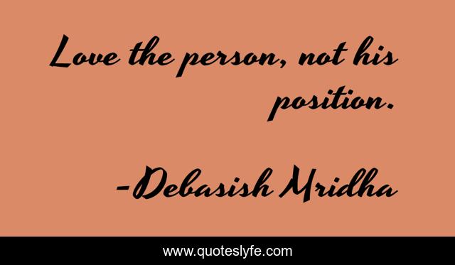 This page presents the quote "Love the person, not his position.". Author of this quote is Debasish Mridha. This quote is about life, love, knowledge, inspirational, intelligence, philosophy, wisdom, quotes, affection,.