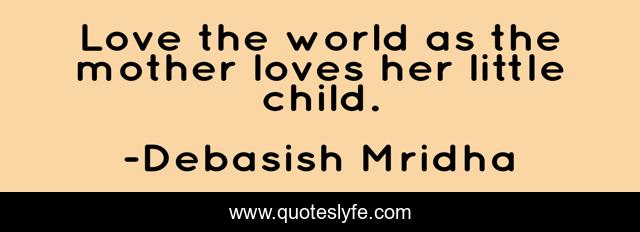 This page presents the quote "Love the world as the mother loves her little child.". Author of this quote is Debasish Mridha. This quote is about love, mridha, debasish, debasish-mridha, mother-lovers-her-child, love-the-world, mother-loves, affection, philsophy,.