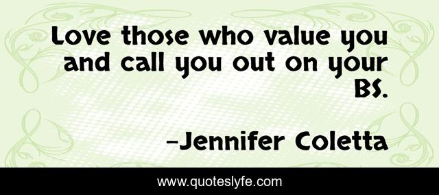 This page presents the quote "Love those who value you and call you out on your BS.". Author of this quote is Jennifer Coletta. This quote is about friendship, love, value, affection,.