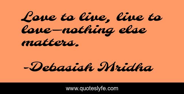 This page presents the quote "Love to live, live to love—nothing else matters.". Author of this quote is Debasish Mridha. This quote is about love, love-to-live, philosophy, debasish-mridha, nothing-else-matters, quotes, debasish-mridha-md, inspirational, live-to-love,.