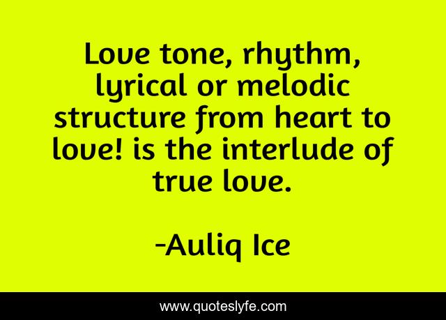This page presents the quote "Love tone, rhythm, lyrical or melodic structure from heart to love! is the interlude of true love.". Author of this quote is Auliq Ice. This quote is about true-love, love, affection,.