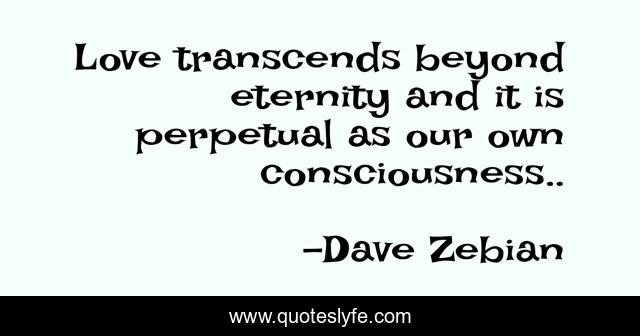 This page presents the quote "Love transcends beyond eternity and it is perpetual as our own consciousness..". Author of this quote is Dave Zebian. This quote is about love, consciousness, perpetual, immortal, imperishable, beyond, affection,.